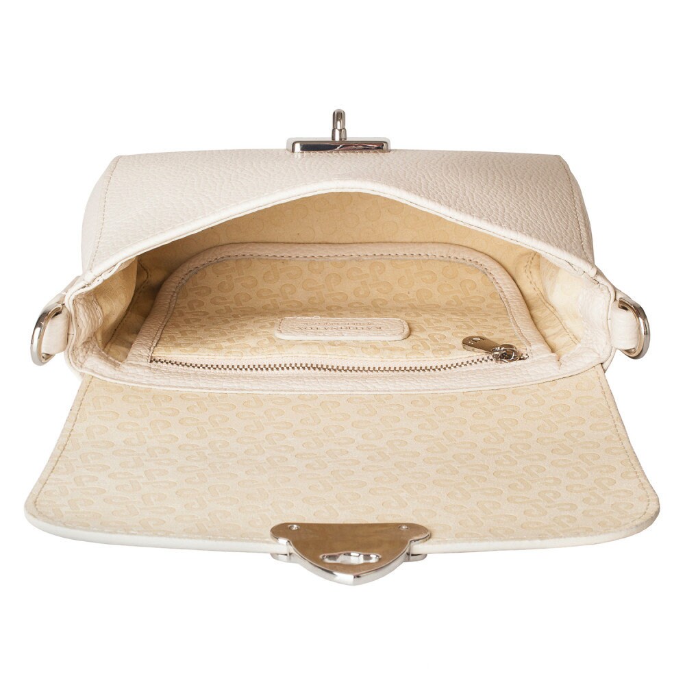 Light beige genuine leather woman shoulder bag from ukrainian designer Katerina Fox. Fashionable and elegant modern bag KF for bright girls and women. This bag is able to attract attention and highlight your exquisite taste. Inside the bag is one large compartment and a convenient zippered pocket for small items, closes the bag on the clasp. The bag is comfortable to wear on the shoulder or across the shoulder. If you are planning to buy excellent leather bag at an affordable price, this handbag is the right choice!